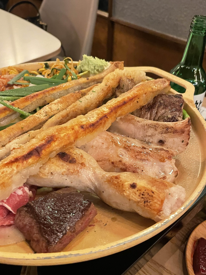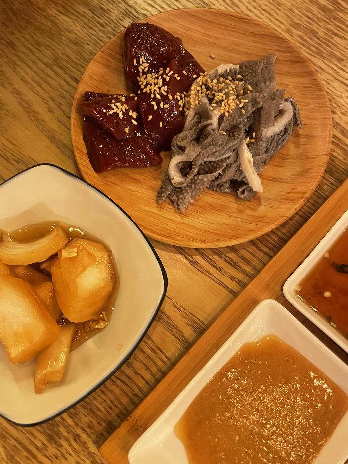 길다란 곱창을 먹기 좋은 크기로 직접 잘라주시는데요. 넘 좋았던게 곱창집임에도 불구하고 고급 고기집처럼 친절하게 서비스해주시고 굽는 것도 도와주시는게 넘 인상적이였어요. 특히나 부자곱은 염통이 마치 스테이크같은 식감과 비쥬얼인게 놀라웠는데요 , 다른 부위에서도 잡내 하나 없고 특히나 곱창은 겉바속촉의 식감이라 넘 신기하더라구요? 그리고 굉장히 귀한 부위인 특양도 같이 나오는데 요건 모듬구이엔 잘 안나오는 부위라 역시 명품곱창은 다르구나 싶었어요