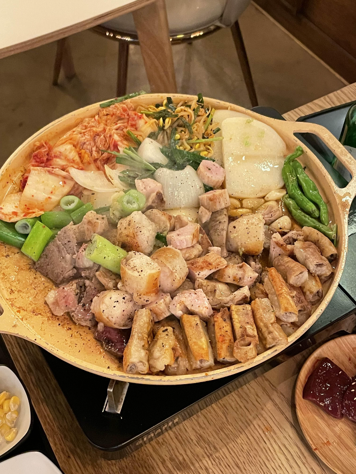 들어가는 순간부터 너무 만족스러웠던 외관과 아주 깔끔한 내부, 생긴지 얼마 안된 화정맛집 답게 분위기가 넘 고급지고 좋았어요. 사진은 없지만 굉장히 넓은 편이라 단체로 방문하기도 좋을 듯 했어요. 아무래도 가격대는 다른 곱창집보다 아주 살짝 높은 듯 했지만 그만큼 퀄리티가 있는 곳이고 서비스도 너무 좋아서 여기 오마카세 아니야? 했을 정도였어요. 화정 가족저녁외식으로 와도 손색 없을만한 곳이였답니다. 부자곱에는 다양한 곱창 부위의 메뉴가 있는데요 , 저희는 이것저것 먹어보고 싶어서 세트메뉴 주문했습니다. 3-4인세트 / 부자곱(4인) + 곱창전골 + 사이드메뉴(핵폭탄 계란찜) 125,000원 세트입니다. 넷이서 푸짐하게 먹을 수 있어 좋은 구성이였어요.