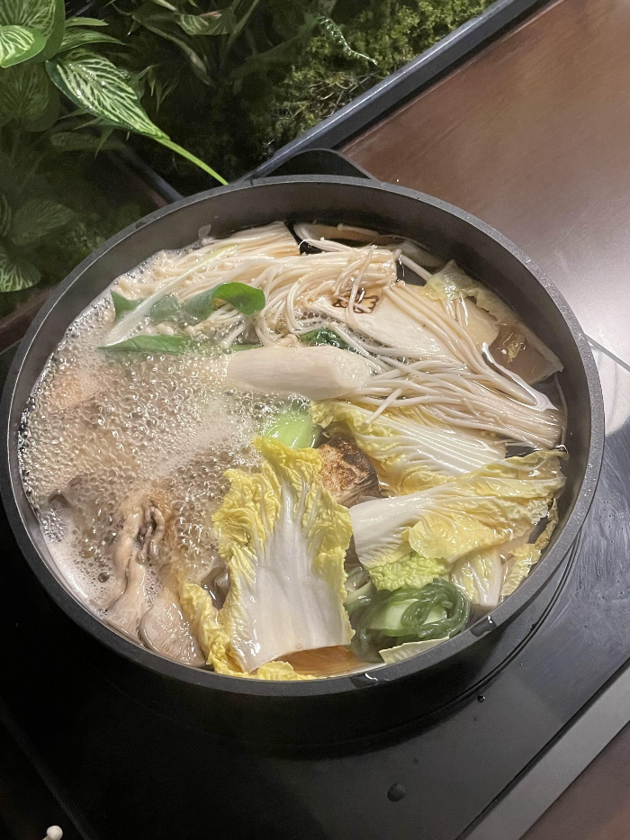 소고기도 투하완료, 고기는 금새 익으니 적은양으로 계속 넣어줬답니다. 생각보다 고기 양도 많아서 먹어도 먹어도 끝이 없더라구요? 혹시 추가로 더 드시고 싶다면 고기추가나 야채추가만 할 수 있어서 좋았어요. 저는 양이 충부했고 특히나 스키야키 육수가 너무 맛있었어요, 자극적인걸 좋아하는 편인데 끓일수록 육수가 강하게 우러나서 넘 제스탈이였어요. 넘 짜다 싶으면 옆에 육수를 자유롭게 넣어 드실 수 있으니 호불호 없이 드실 수 있을 듯 해요.