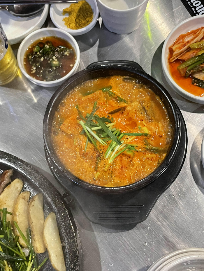 매콤한 국물이 필요해서 주문해본 한우양곰탕, 뚝배기에 팔팔 끓어 나오는데 국물이 진짜 찐하니 맛있어요. 곱창전골 느낌인데 재료도 푸짐하고 퀄 너무 좋았어요. 곱창의 느끼함을 싹 잡아주는 맛이라 꼭 같이 시켜먹음 좋을 듯 합니다