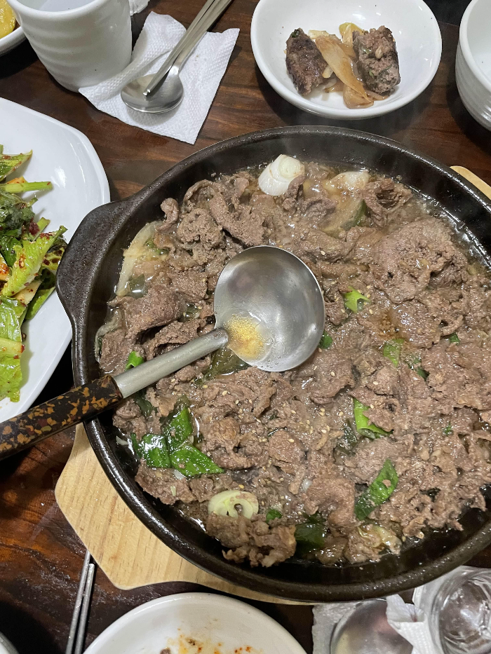 반찬으로도 안주로도 탁월했던 도토리묵, 사이드 메뉴 겸 주문했는데 생각보다 양념이 너무 맛있어서 만족스러웠어요. 사진엔 없지만 저희는 두부전골을 메인으로 먹었는데 도토리묵은 반찬으로도 너무 괜찮더라구요? 인사동 한가네 불고기에서 저녁에 반주 하신다면 도토리묵은 꼭 시켜드시면 좋을 듯 합니다.