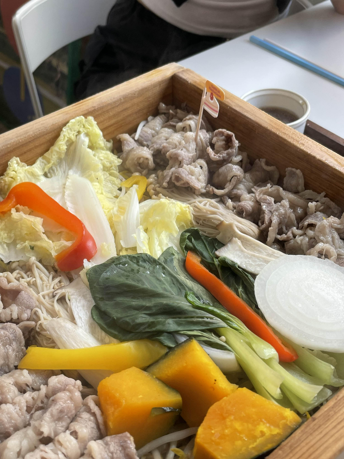 스웨덴 피크닉을 모임장소로 선택한 이유 , 성수 와인바 이지만 음식 메뉴들이 다양하고 퀄리티가 좋아보였다는 점인데요. 그 중에서도 편백찜 너무 맛있어보여서 첫번째로 픽한 메뉴랍니다. 피크닉 편백찜은 3만원 중반대의 가격으로 구성이 굉장히 좋은 편이에요. 와인과 편백찜 조합은 처음이라 어울릴까 싶었지만 갓벽하게 어울렸답니다. 청경채와 버섯 배추 그리고 단호박 양파 등 다양한 야채들이 푸짐하게 쌓여있고 우삼겹 또한 양도 많고 잘 익혀져서 넘 부드럽더라구요 . 같이 나온 소스도 넘 잘 어울렸고 맛있었어요