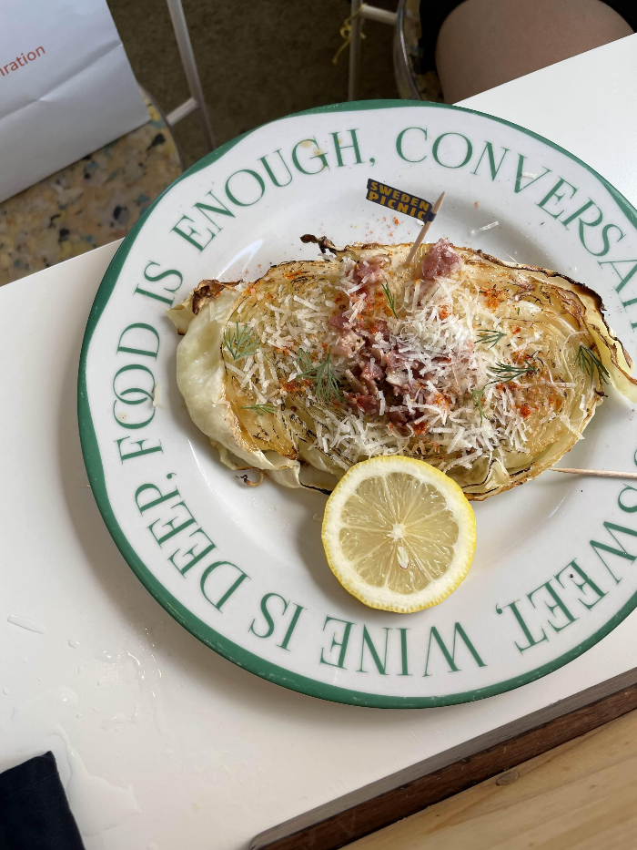 헤비한 음식들 사이에서 사이드메뉴로 주문해본 양배추 스테이크 샐러드, 친구가 적극 추천해서 주문했는데 소스가 정말 맛있더라구요? 맛도 맛이지만 비쥬얼도 넘 좋고 와인이랑도 잘 어울리는 메뉴였답니다