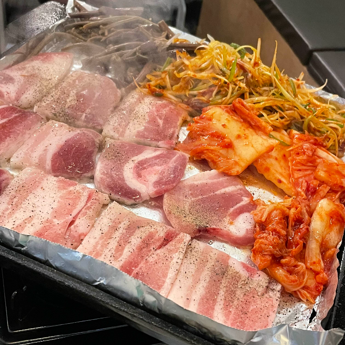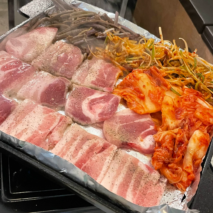 냉삼 예쁘게 올려서 굽굽해줍니다