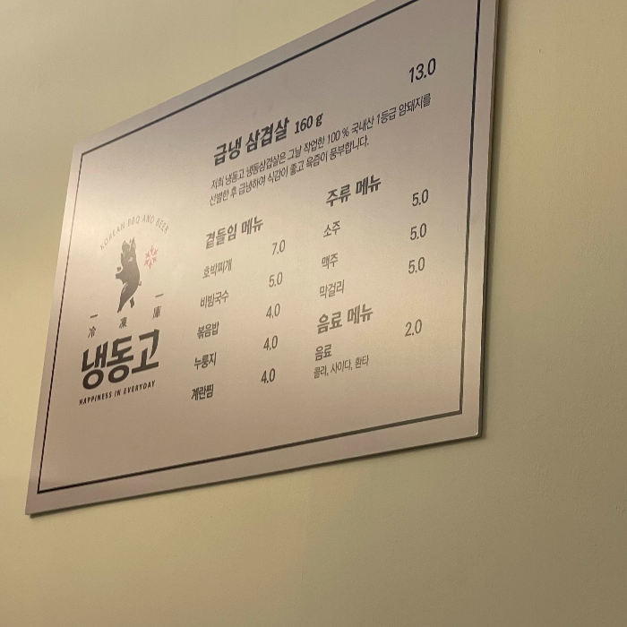 삼송 냉동삼겹 맛집 냉동고 메뉴판 ,