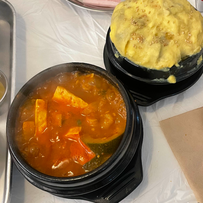 사이드메뉴로 계란찜과 호박찌개 주문했어요